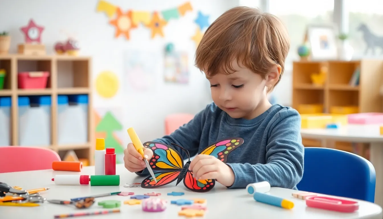 Spring inspires vibrant butterfly crafts that incorporate fresh colors and natural elements. Preschoolers can create paper butterfly garlands using cardstock, scissors, and glue. Selecting bright pastels and floral patterns energizes the decor and beautifies any space. Handprint butterflies represent another engaging option. Children can dip their hands in paint and imprint them on paper, adding eyes and embellishments to create unique designs. Using flower petals and leaves enhances the connection with nature while introducing various textures and colors to their projects. Executing these spring crafts promotes fine motor skills and invites sensory exploration.